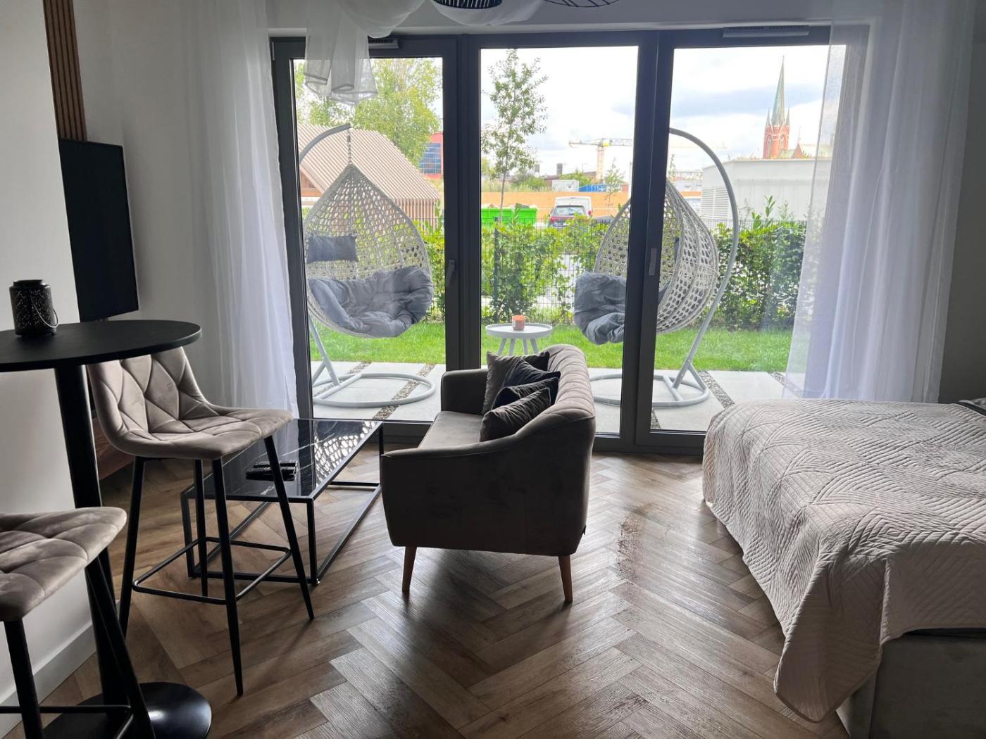 Apartament z 1 sypialnią. This apartments special feature is the sauna. Featuring 1 bedroom, this apartment offers 1 bathroom with a walk-in shower, a seating area and terraceyou can relax. Guests will find a stovetop, a refrigerator, a dishwasher and kitchenware in the well-fitted kitchen. The apartment also provides guests with a barbecue. The apartment provides a flat-screen TV with streaming services, a washing machine, a tea and coffee maker, executive lounge access as well as garden views. The unit has 1 bed. Apartament - 2 osobowy. Powierzchnia pokoju ok.: 30 mkw.